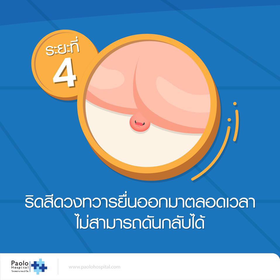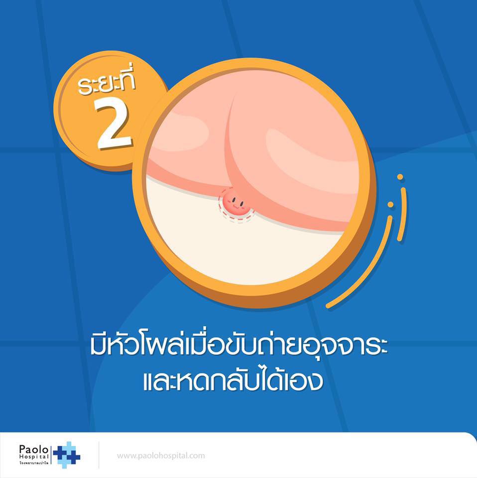 - อายุที่มากขึ้นทำให้กล้ามเนื้อหย่อนยาน จนทำให้เบาะรองเลื่อนลงมาจนยื่นออกมาจากทวารหนัก